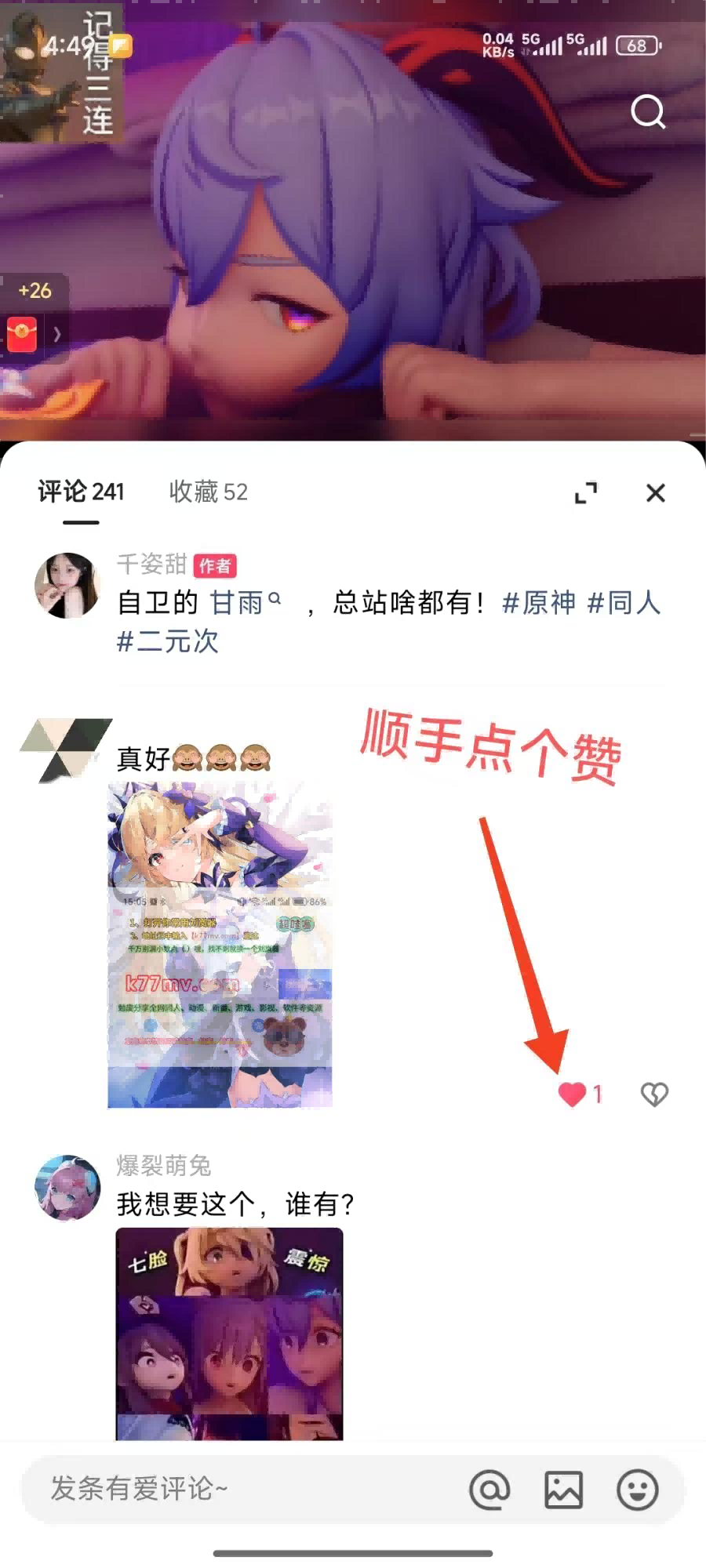 打开作品评论区评论 1张 上面刚保存的图片